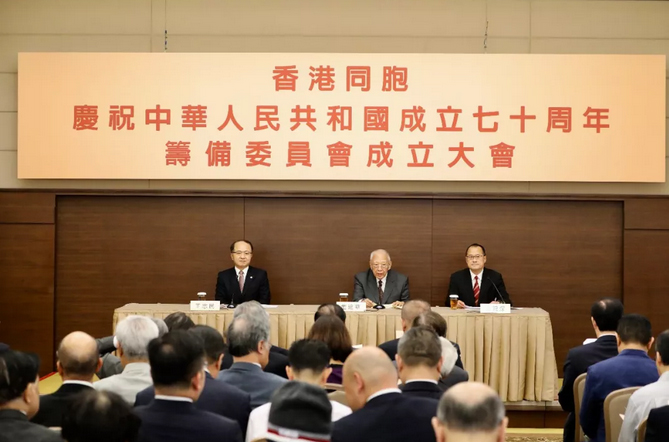 7月11日,香港同胞慶祝中華人民共和國成立70周年籌委會成立大會在香港中華總商會禮堂舉行。我辦主任王志民應邀出席并致辭。