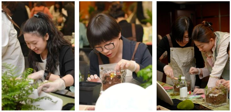 其中,微景觀藝術(shù)沙龍全天分為四場,公司總部200余名女性職工積極參與?;顒悠陂g,學(xué)員在老師的帶領(lǐng)下,通過聽、聞、看、觸,打開并提升自我的感知力,在與自然共處的同時,擁抱自己,接納自己。