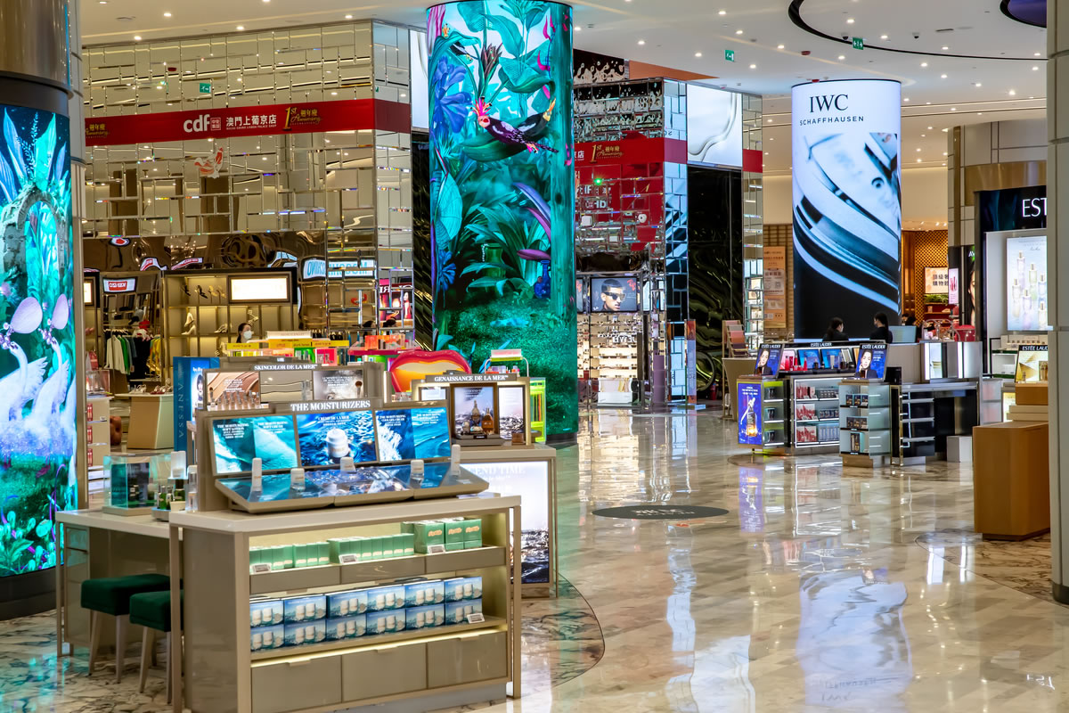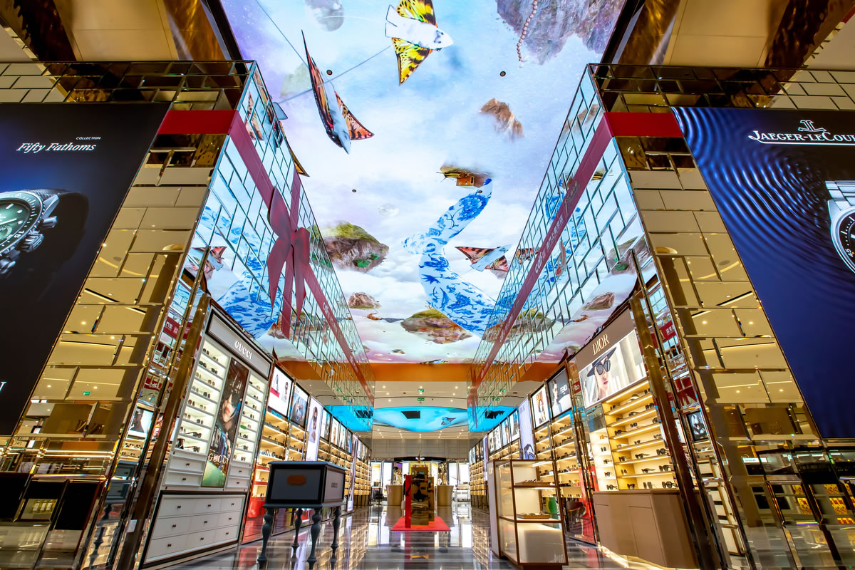 澳門(mén)全新購(gòu)物天堂,超越界限,一站品蘊(yùn)全球。作為中免集團(tuán)首家澳門(mén)市內(nèi)旗艦店,cdf澳門(mén)上葡京店秉承中免集團(tuán)“分享購(gòu)物的快樂(lè),延伸旅游的享受”的企業(yè)使命,打造澳門(mén)全新購(gòu)物天堂,為廣大游客提供頂級(jí)奢華的購(gòu)物體驗(yàn)。門(mén)店占地約 7500 平方米,以度假村中的超現(xiàn)實(shí)島嶼”,夢(mèng)幻、不可預(yù)測(cè)、可視化、富有藝術(shù)感,融匯光影反射的抽象形態(tài),融合復(fù)古與未來(lái)的設(shè)計(jì)風(fēng)格,打造出在夢(mèng)幻島嶼的氛圍,為客人提供全新的感官享受,探索新模式購(gòu)物的無(wú)限可能。