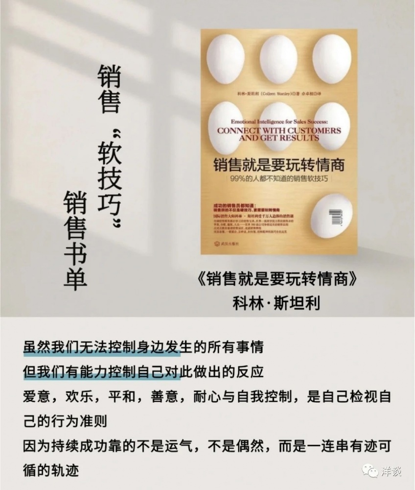 前段時間幾個同事來找我傾訴,說客戶的溝通該做的我都做了,最后怎么客戶不理我了?我們一起分析原因,商量對策。后來我把大家遇到的問題進(jìn)行了歸納總結(jié),準(zhǔn)備分析探討一個主題:為什么客戶不理我。在充實(shí)材料的時候,我發(fā)現(xiàn)了一本好書,它從問題的本質(zhì)、理論的依據(jù)以及實(shí)操的維度解答了大家的困惑。今天和大家分享這本書的精髓。書名叫作《銷售就是要玩轉(zhuǎn)情商》,它的副標(biāo)題是“99%的人都不知道的銷售軟技巧”,在博雅、思文書屋都有賣。