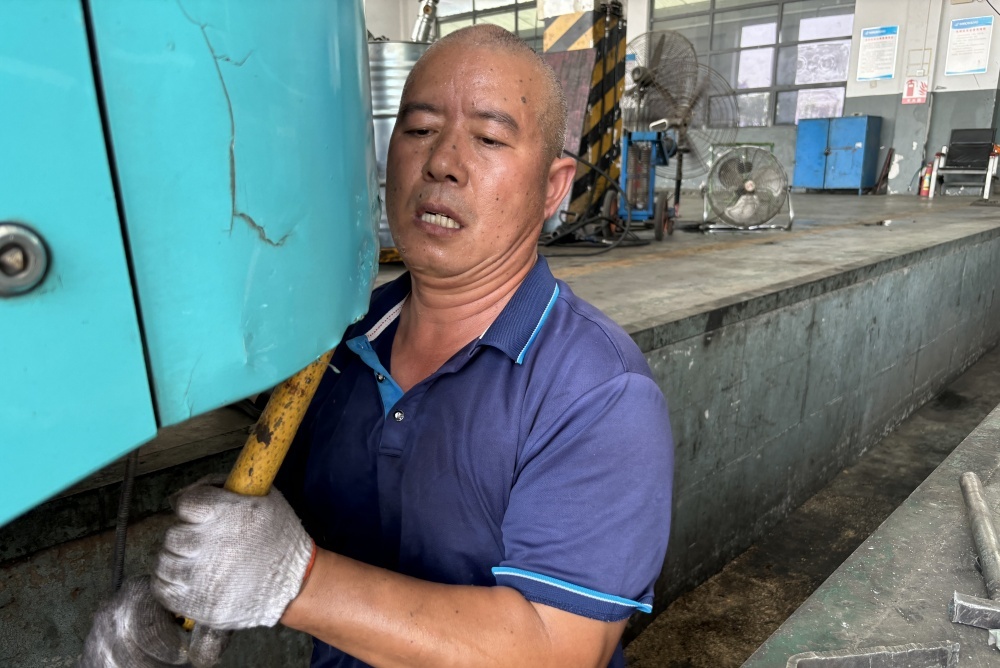 風(fēng)扇吹不散車間悶熱,他全神貫注,手中工具穩(wěn)穩(wěn)擰動(dòng),只為公交車能盡快修復(fù)。