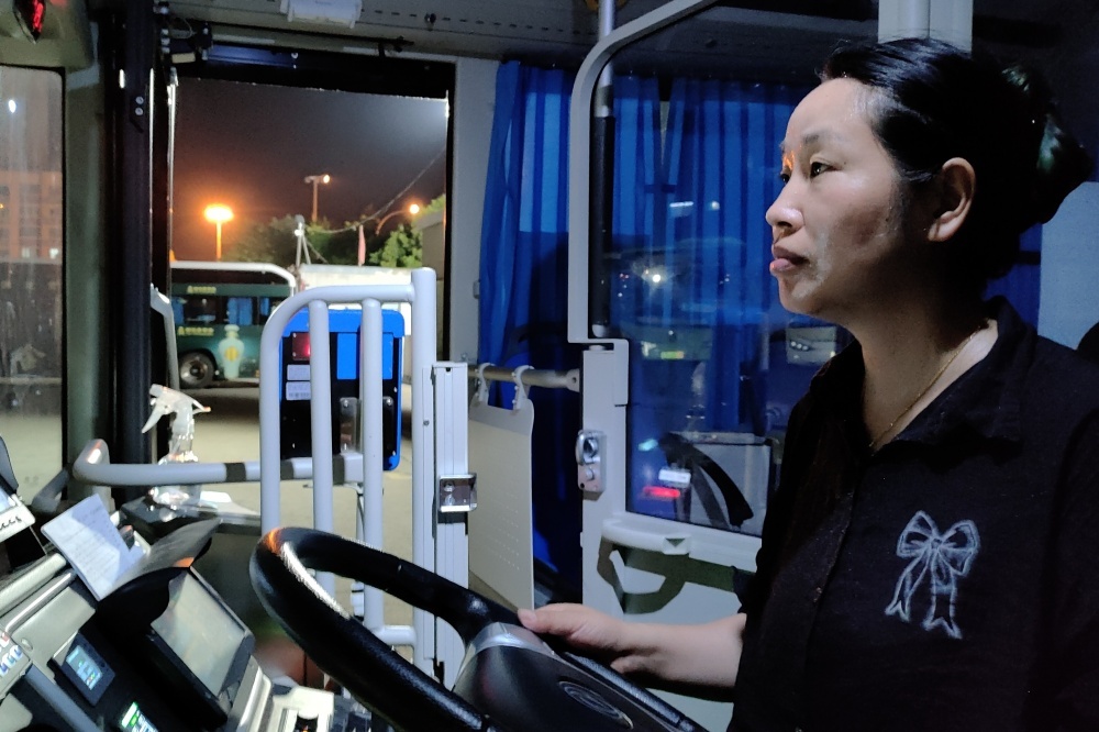夏夜的停車場很是悶熱,她穿梭于公交車之間熟練地挪動(dòng)車輛,確保每輛車都能在充電低峰時(shí)段把電充滿。