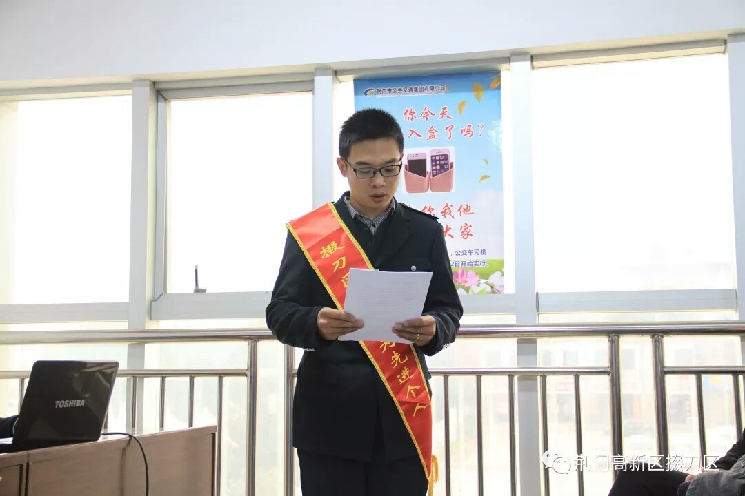 在當(dāng)天的表彰大會(huì)上,荊門市高新區(qū)·掇刀區(qū)政法委副書記朱曉紅、市公交集團(tuán)有限公司副總經(jīng)理張忠林還分別結(jié)合“10·28重慶萬州公交車墜江事故”要求廣大公交駕駛員遵守職業(yè)道德,如何理性對(duì)待無理取鬧的乘客,遠(yuǎn)離負(fù)能量的人。表揚(yáng)聶聰聰在他人的財(cái)產(chǎn)找到嚴(yán)重危害時(shí),義不容辭的出手相救,有效避免了他人重大財(cái)產(chǎn)損失,并號(hào)召要以身邊的時(shí)代楷模聶聰聰為榜樣,學(xué)習(xí)聶聰聰奮不顧身、見義勇為的高尚品質(zhì),要大力宣傳宣傳見義勇為先進(jìn),以先進(jìn)的事跡感染人、吸引人,以崇高的精神激勵(lì)人、鼓舞人,用實(shí)際行動(dòng)傳遞社會(huì)正能量,為平安掇刀創(chuàng)建作出新的貢獻(xiàn)。