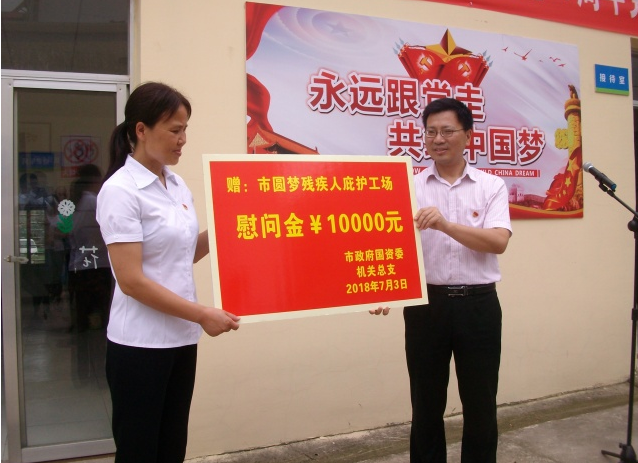 7月3日,為紀(jì)念中國(guó)共產(chǎn)黨建黨97周年,市政府國(guó)資委機(jī)關(guān)黨總支、市交投集團(tuán)機(jī)關(guān)黨支部、市公交集團(tuán)機(jī)關(guān)黨支部以“念黨恩、獻(xiàn)愛(ài)心”為主題,組織黨員們一同走進(jìn)市圓夢(mèng)殘疾人庇護(hù)工場(chǎng),開(kāi)展7月份黨員主題活動(dòng)日活動(dòng)。