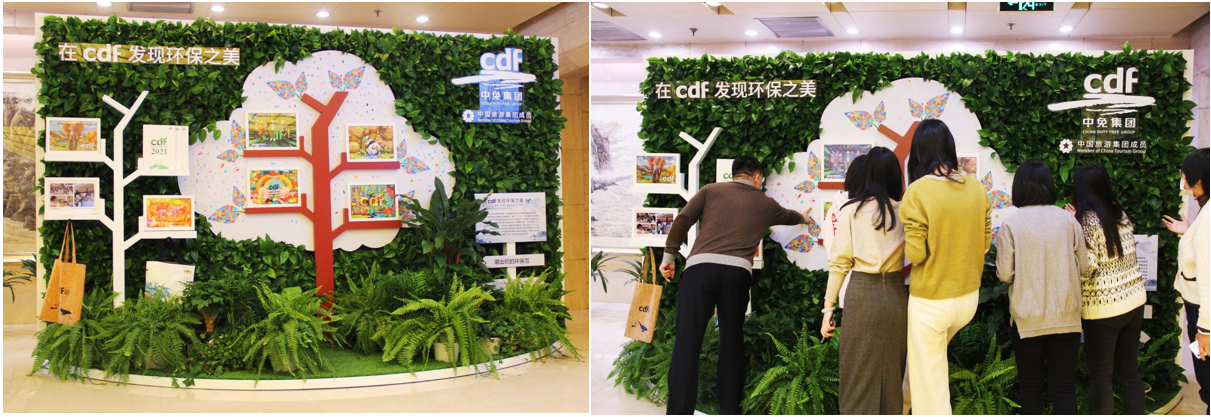 近日,在中免集團(tuán)總部及三亞國(guó)際免稅城、??谌赵聫V場(chǎng)免稅店、海口美蘭機(jī)場(chǎng)免稅店舉行了“在cdf發(fā)現(xiàn)環(huán)保之美”環(huán)?;?dòng)活動(dòng),活動(dòng)現(xiàn)場(chǎng)展示了《2021中免集團(tuán)環(huán)保綠皮書》、優(yōu)秀環(huán)保海報(bào)設(shè)計(jì)作品,并與消費(fèi)者互動(dòng)在環(huán)保樹(shù)上留下環(huán)保印記,領(lǐng)取定制環(huán)保手提袋、環(huán)保臺(tái)歷等紀(jì)念品。