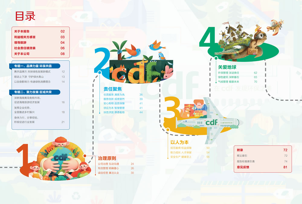 值得注意的是,本次ESG報(bào)告封面和部分內(nèi)頁(yè)插圖選自“在cdf發(fā)現(xiàn)環(huán)保之美”環(huán)保公益海報(bào)設(shè)計(jì)大賽獲獎(jiǎng)作品,希望通過(guò)異彩紛呈的審美創(chuàng)意、元素碰撞,進(jìn)一步傳遞綠色發(fā)展的美好愿望。